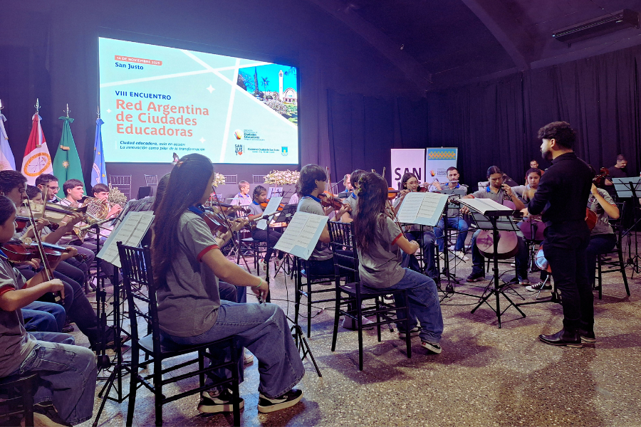 Por la tarde, se celebró una mesa de intercambio sobre innovación educativa, seguida de la presentación del XVIII Congreso Internacional a celebrar en Granollers y la Mesa de Intendentes en la que participaron: Bell ville, Ceres, Despeñaderos, Malabrigo San Justo y San Vicente. La jornada concluyó con una conferencia sobre “Ciudad Educadora, aula en acción: La innovación como pilar de transformación”, y un concierto a cargo de la orquesta infanto-juvenil de San Justo.